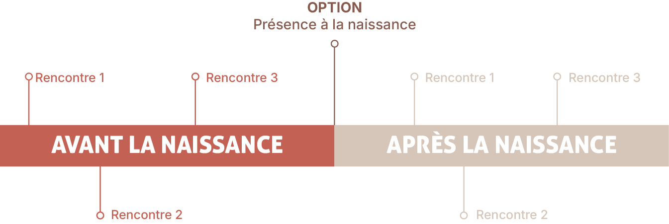 Parce que chaque chemin est unique et que le lien entre la doula et le couple est essentiel, l’accompagnement « Naître Mère » débute avec deux étapes importantes :